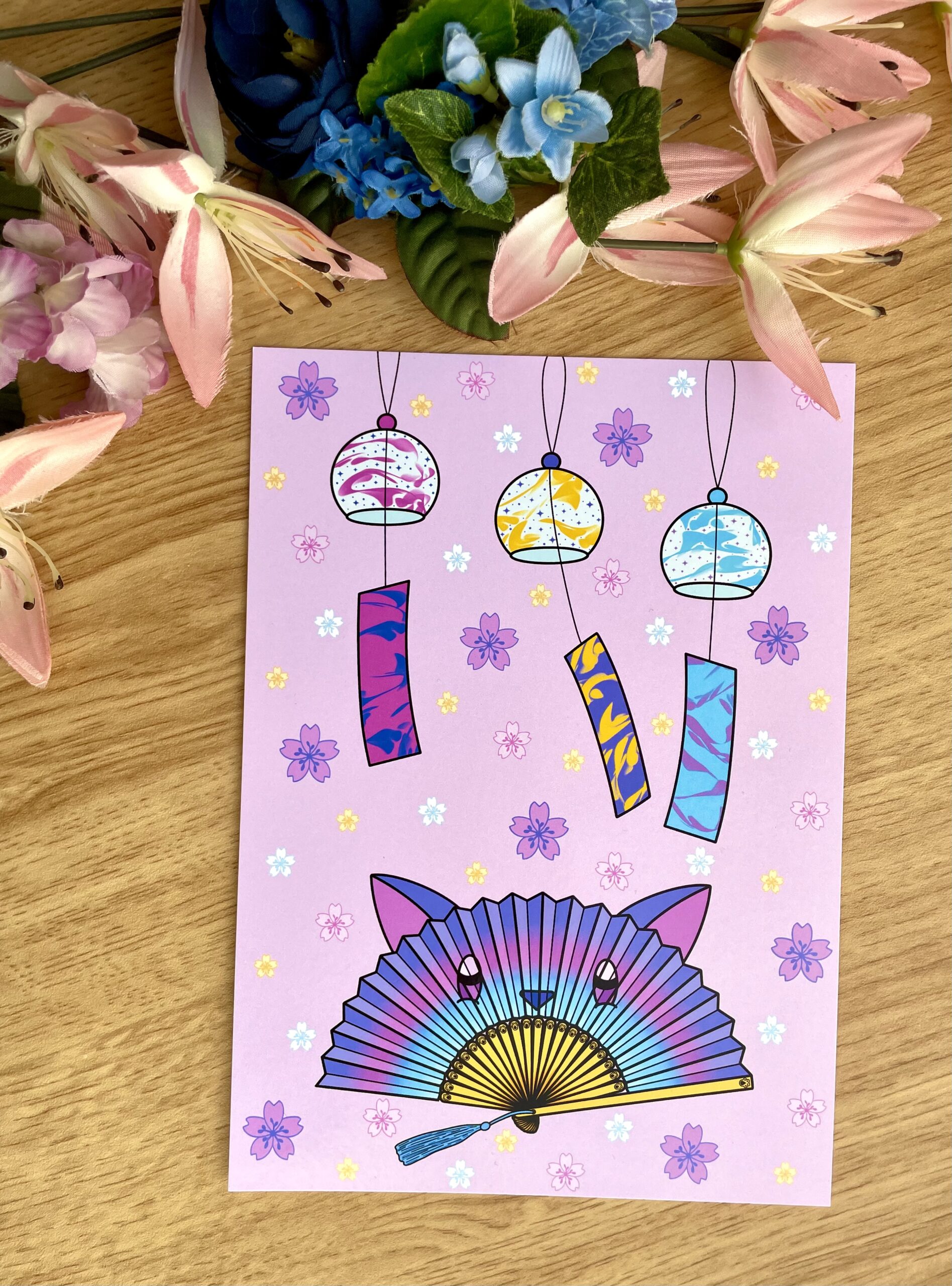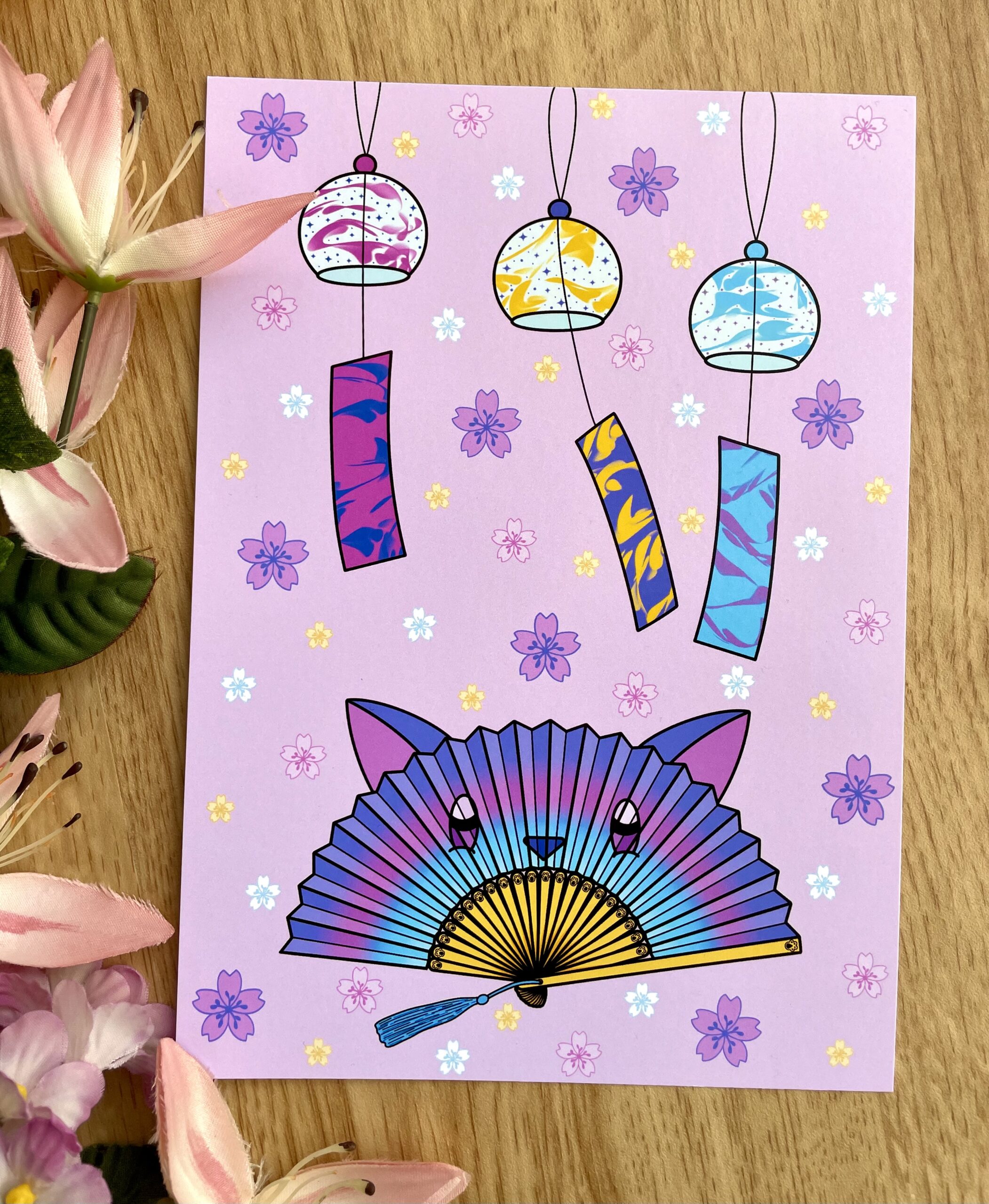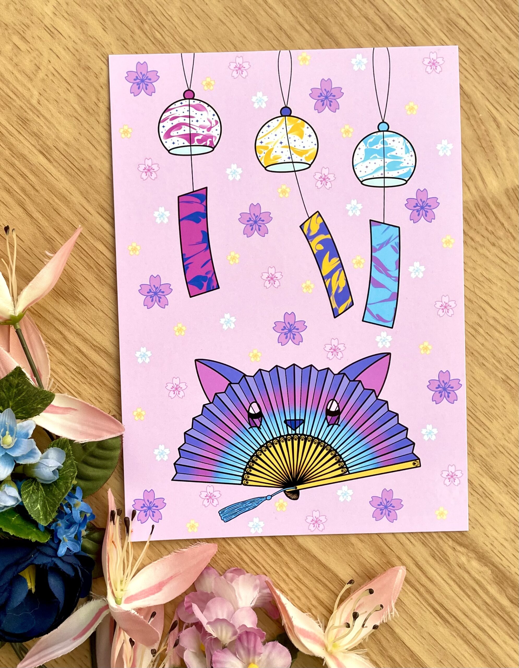 Un éventail, des carillons à vent et des fleurs de Sakura… Ne serait-on pas parti faire un tour du côté du Japon avec l’illustration Cherry Blossom ?! Voyagez jusqu’au Pays du Soleil Levant tout en douceur en affichant cette illustration chez vous !