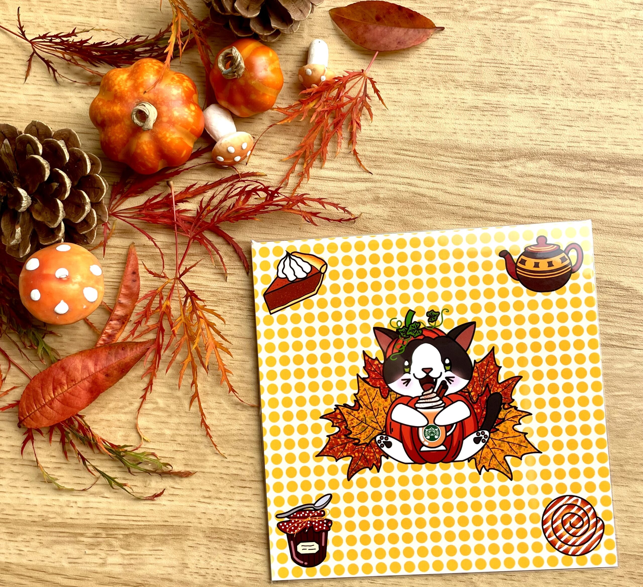 L’automne et ses douceurs vous font craquer ? Avec l’illustration Sweet Autumn, c’est toute la douceur des gourmandises de l’automne que vous afficherez chez vous ! Tarte à la citrouille, roulé à la cannelle, confiture et boissons chaudes (Pumpkin spice latte pour Skittles et… un thé pour vous ?) ne manqueront pas de vous faire saliver !
